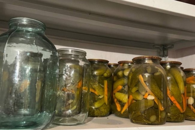 Переверните банки дном вверх, заверните в теплое одеяло и оставьте при комнатной температуре до полного остывания. Это поможет создать вакуум, что улучшит проникновение специй в огурцы. Храните консервацию в прохладном темном месте, например, в погребе, кладовке или холодильнике при температуре 5–15 °C, желательно в вертикальном положении для лучшей сохранности.