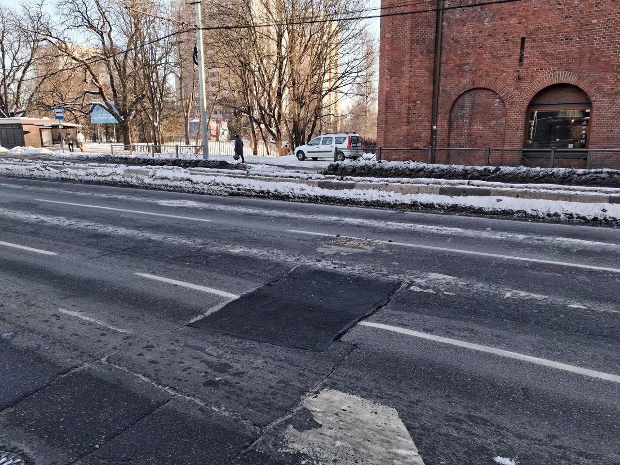 В Калининграде возобновили ямочный ремонт на основных улицах, при этом многие второстепенные до сих пор даже не очистили ото льда
