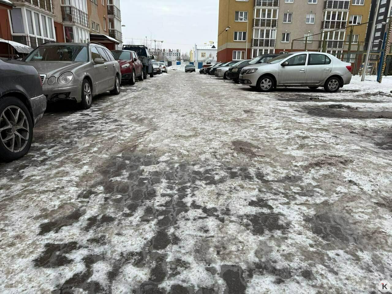 При этом кое-где асфальта не видно вовсе. На улице Савенко, названной в честь бывшего мэра Калининграда, проезжая часть практически скрыта под ледяными наростами.