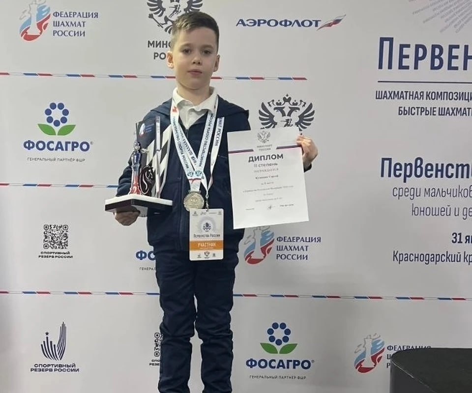 Он выиграл серебро первенства России по шахматам. Парень отличился в блице в категории «мальчики до 9 лет».