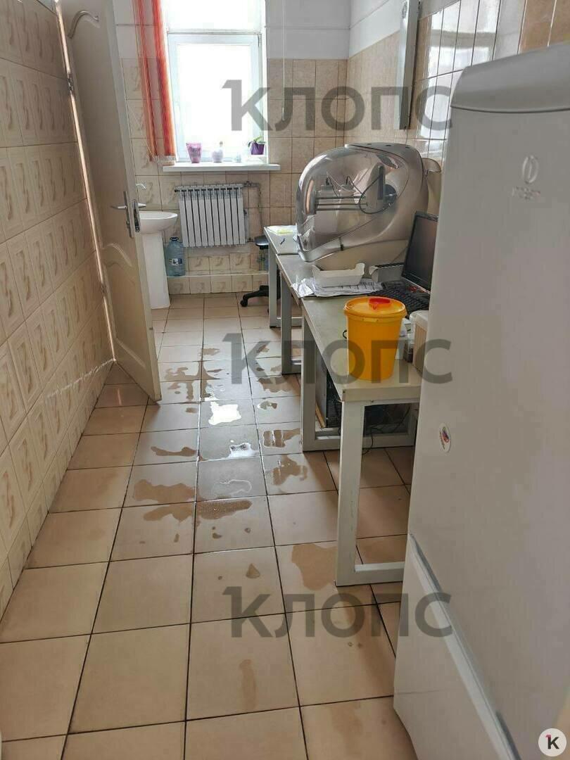 Как рассказали «Клопс» в поликлинике, «сорвало кран на трубе». Поломку устранили, стены просушат и покрасят, ПВХ-панели с потолка сняли для замены.