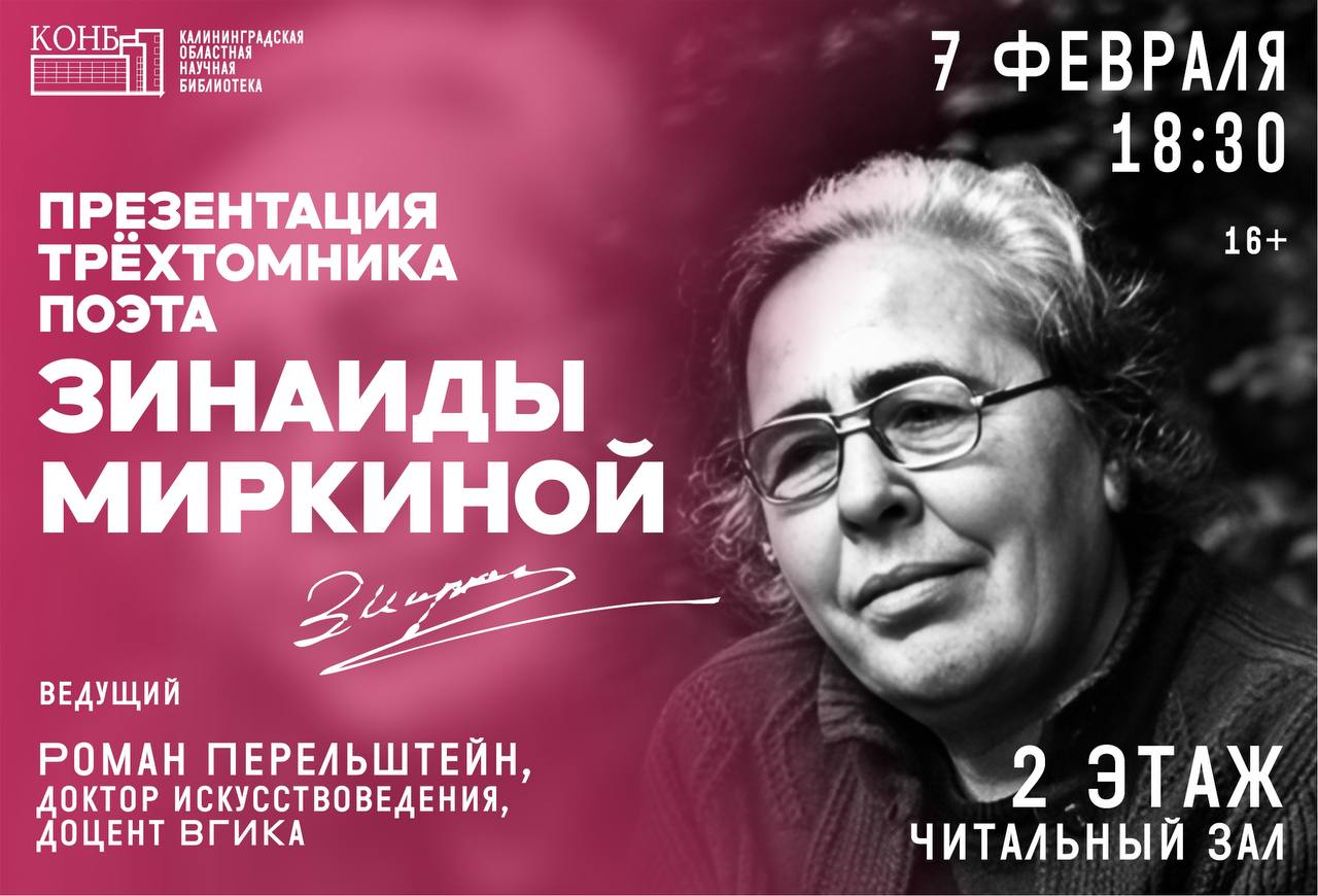 В научной библиотеке состоится презентация трёхтомника поэта Зинаиды Миркиной.