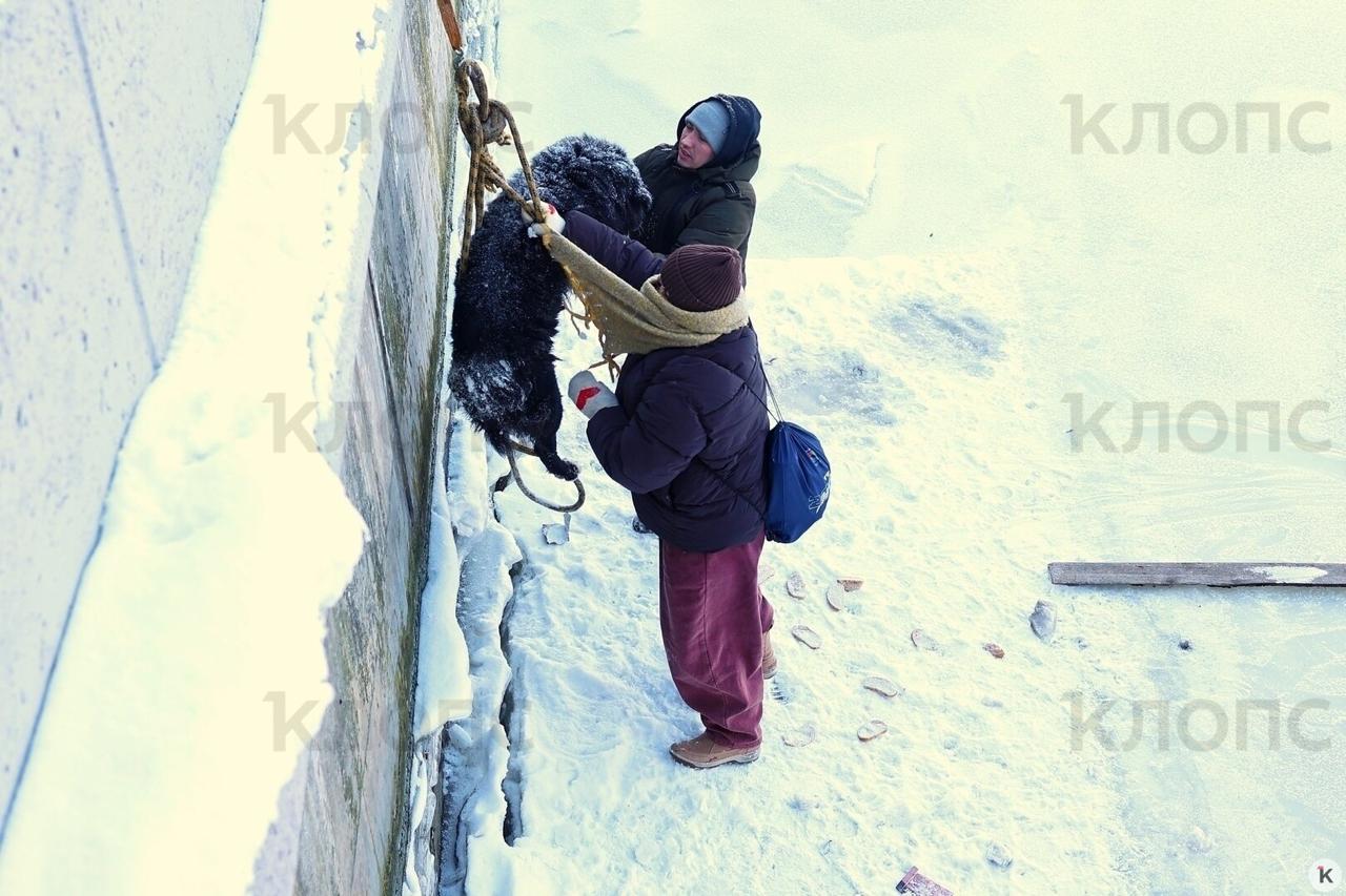 К спасению подключились другие люди. Девушки с соседней стройки принесли доску, но собака боялась подойти. Тогда Анна и её помощницы сами спустились на лёд. Позже пришли мужчины с верёвкой, сделали петлю и вместе вытащили пса наверх.