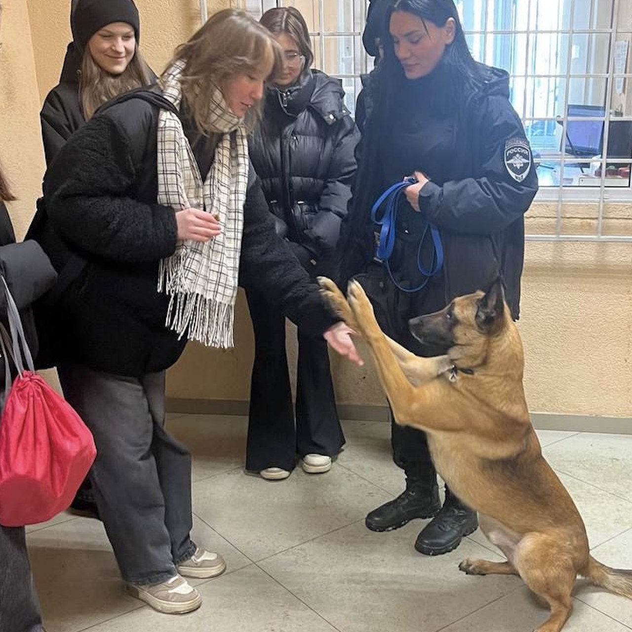 Важной частью встречи стало знакомство с четвероногим помощником полицейских – служебной собакой по кличке Икс. Кинолог продемонстрировала навыки Икса, который показал, как он может обнаруживать имитаторы закладок наркотических средств. Этот момент произвел на школьников большое впечатление, и они с интересом наблюдали за работой собаки.
