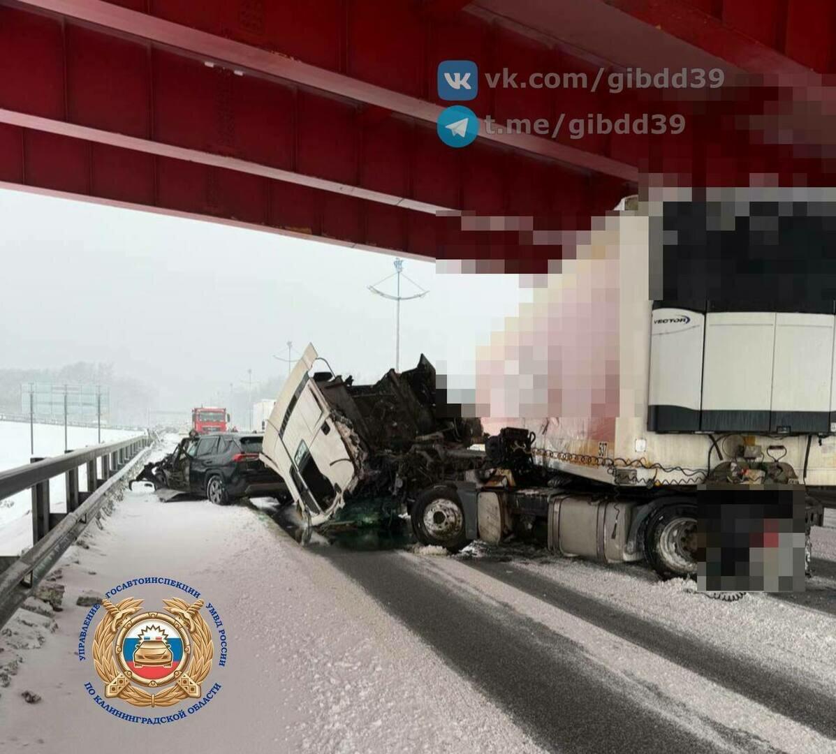 По предварительным данным, фура ехала из Калининграда в сторону Зеленоградска и около 16:20 врезалась в дорожное ограждение. Следовавшая за ней машина влетела в остановившийся полуприцеп.