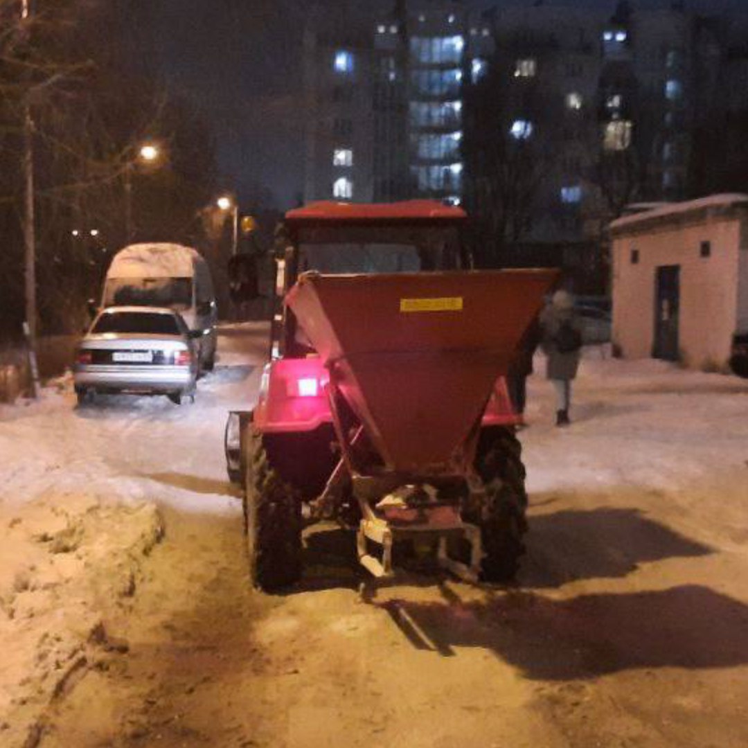 Накануне ночью начали превентивную обработку основных дорог, тротуаров, путепроводов, кольцевых развязок, спусков и подъемов.