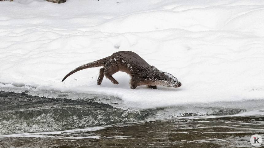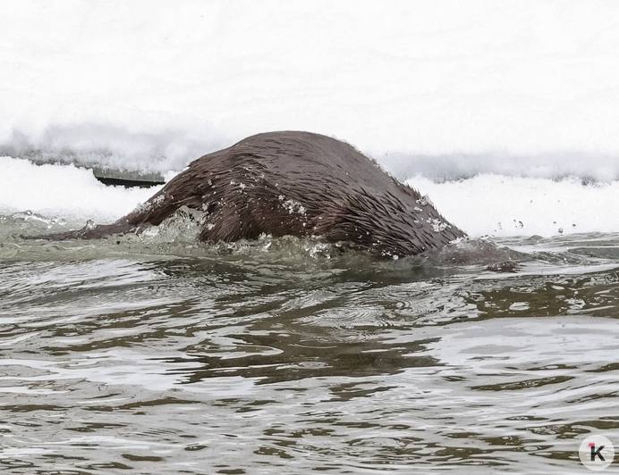 Местный житель Юрий Таркин поймал в объектив охотящуюся выдру, слегка припорошённую снежком. Как рассказал Клопс сам фотограф, зверька в этом месте он наблюдал впервые.