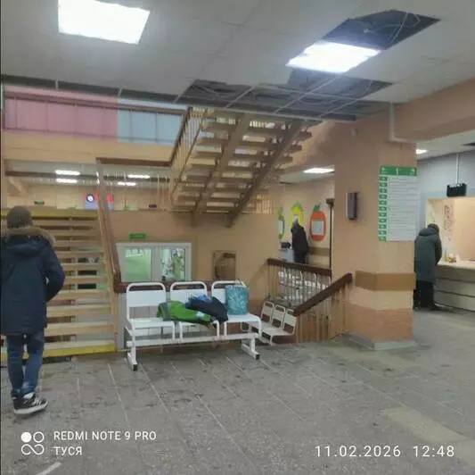 По словам очевидцев, потоп случился 8 февраля. На следующий день не выдержал и рухнуло декоративное потолочное покрытие на входе в медучреждение. Никто из посетителей не пострадал. До конца недели попасть в здание можно через чёрный ход.