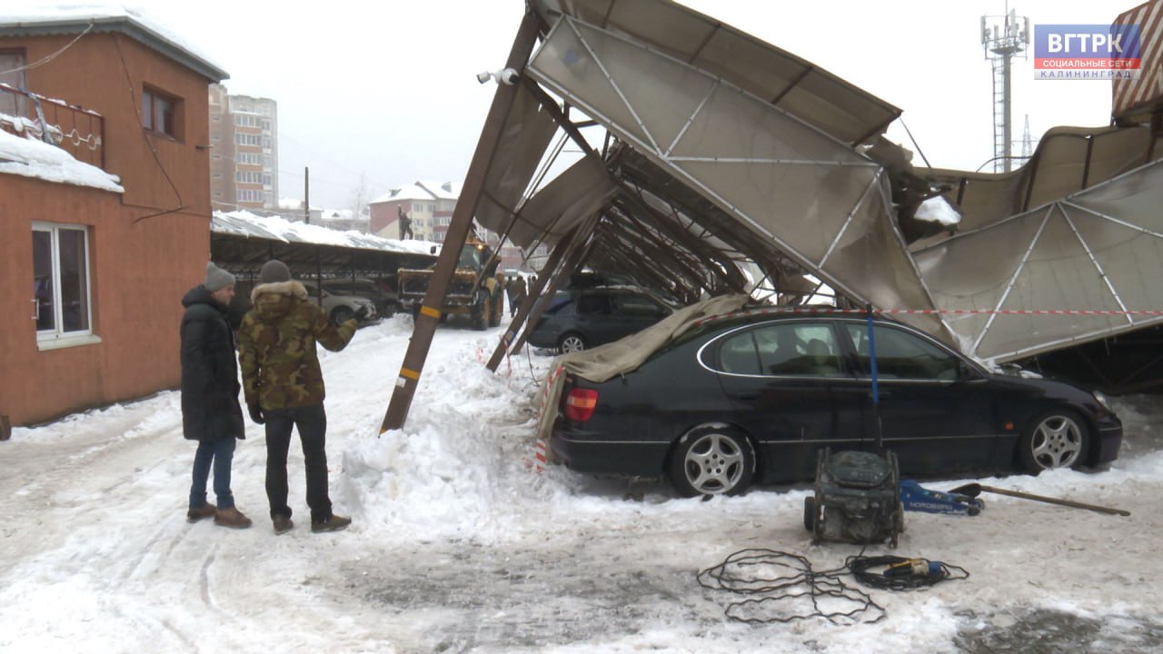 На автомобили под тяжестью снега обрушилась крыша парковки.