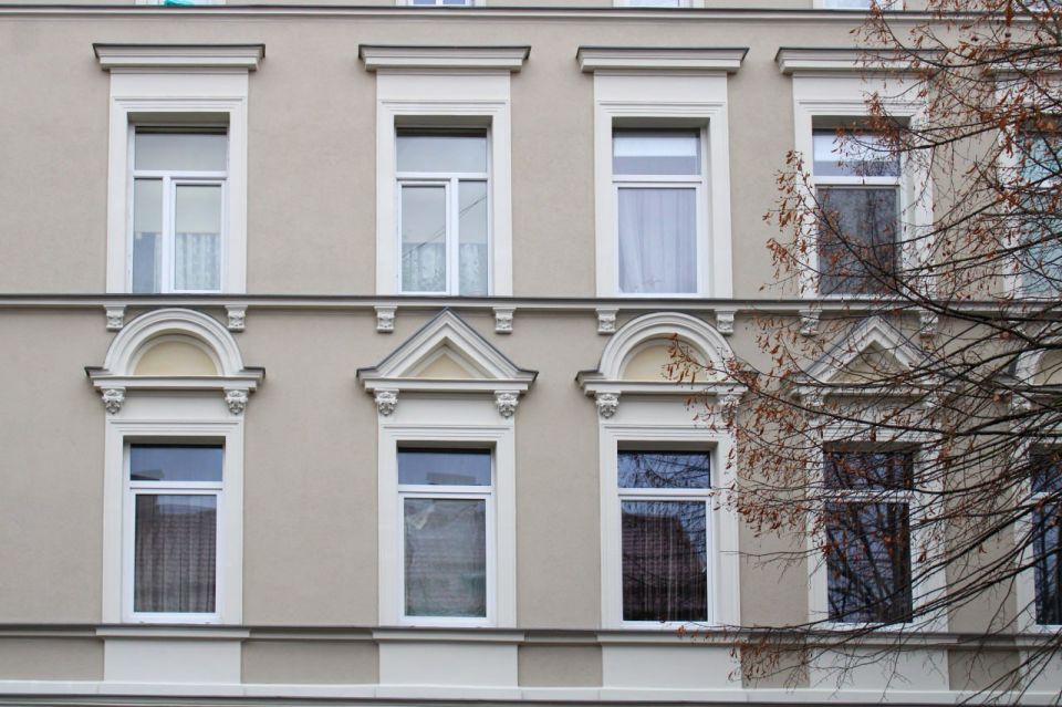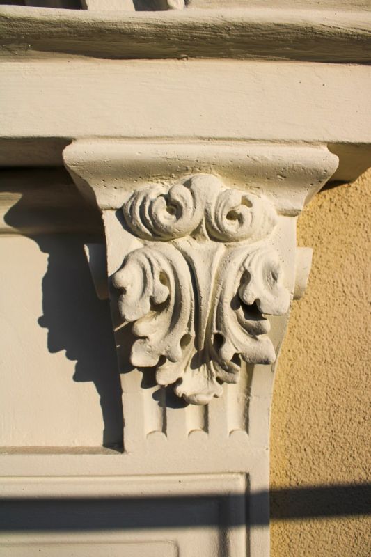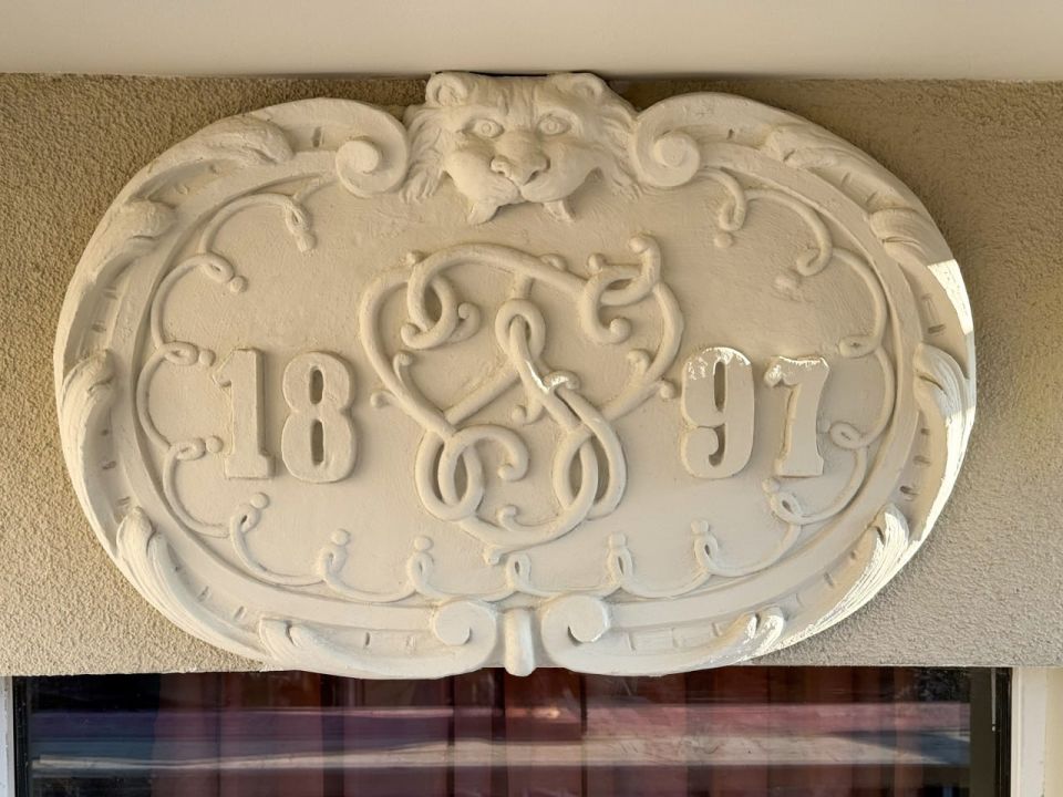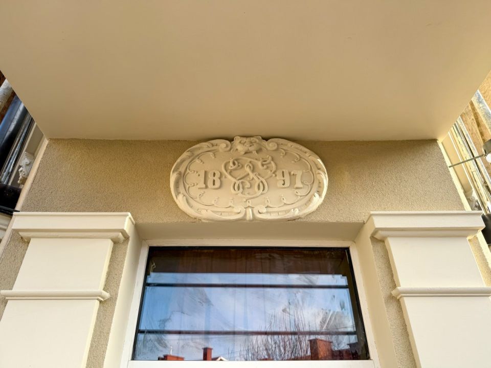 Воссоздали картуш с датой «1897». Его восстановила профессиональный скульптор. Теперь фасад снова выглядит так, как задумывали при строительстве дома.