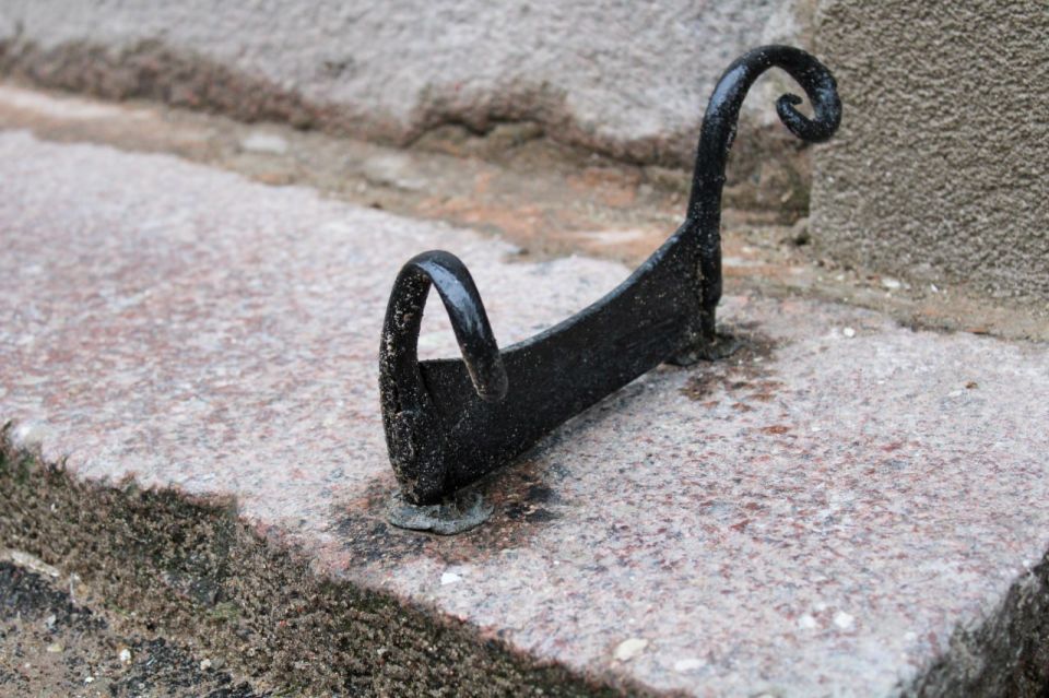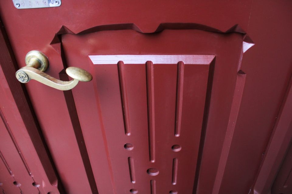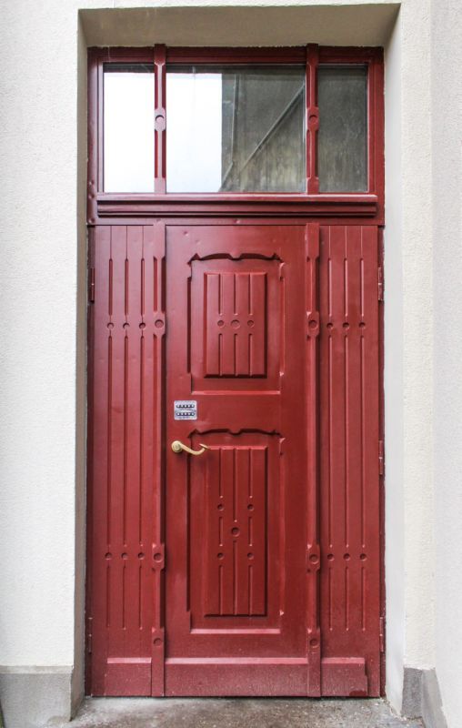 У входа нашли декроттуар. Дополнительно установили новую входную дверь с фрамугой — вместо прежнего металлического листа. Её дизайн перекликается с историческими дверями Советска и гармонично дополняет обновлённый фасад.