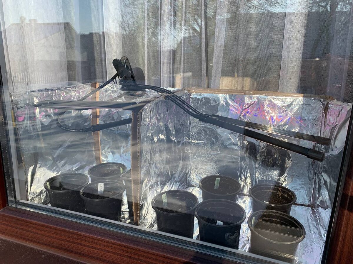 Теперь обклейте внутренние стенки фольгой — это увеличит уровень освещенности рассады на 20-40%.