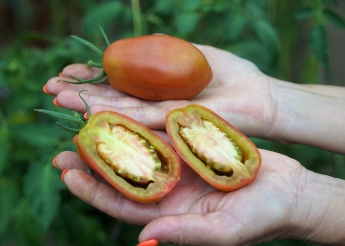 Мякоть томатов плотная и с минимальным количеством семян, что добавляет сочность. Баланс вкусов обеспечивает их популярность в консервировании и свежих салатах.