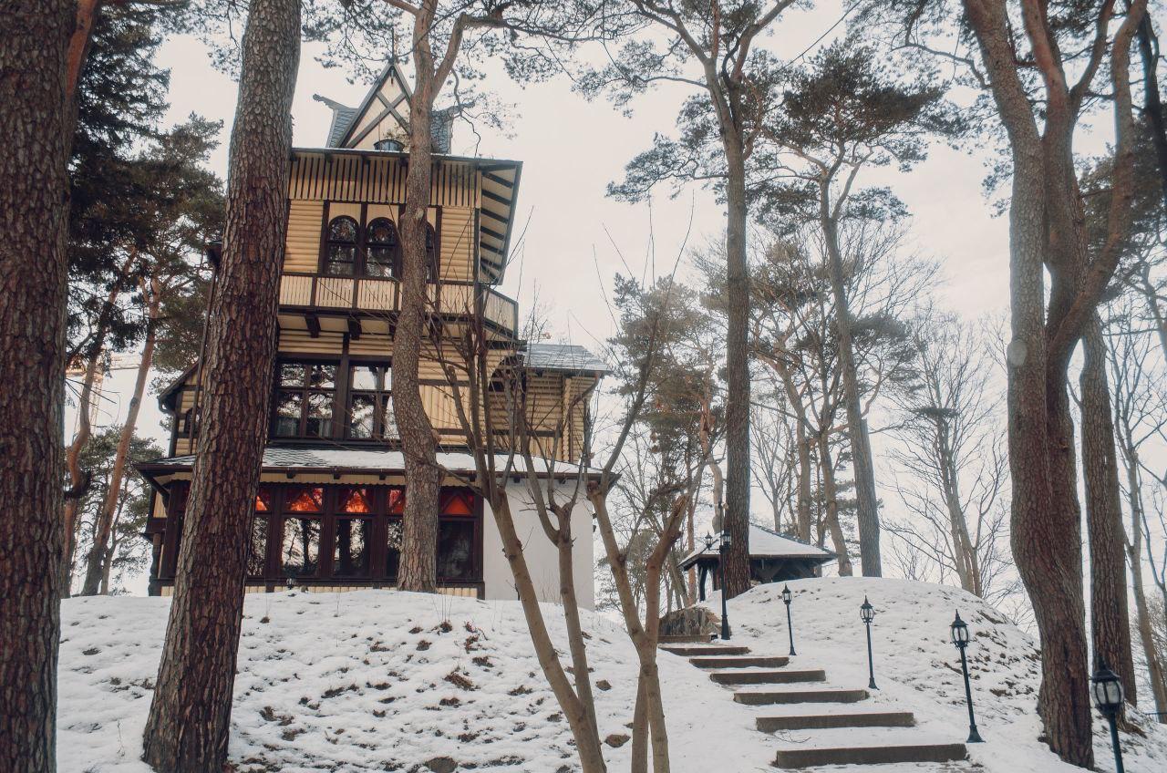 Одна из самых необычных построек Светлогорска — старинный Охотничий дом в стиле, который называют «драконьим». Он пришёл из Норвегии и вдохновлялся средневековыми деревянными храмами. Крышу украшают резные коньки в виде голов мифических существ и флюгер-змей с крыльями — детали, которые делают здание по-настоящему сказочным.
