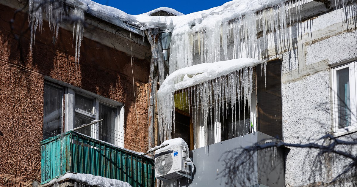 Ледяной оскал: на карнизах калининградских домов выросли метровые сосульки (фото)