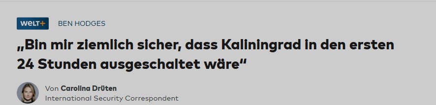Об этом он сказал в интервью Die Welt.«Я почти уверен, что Калининград был бы выведен из строя в первые 24 часа. Об этом говорили и другие командующие. Я не имею в виду ввод туда сухопутных войск — речь о применении кинетических и некинетических...