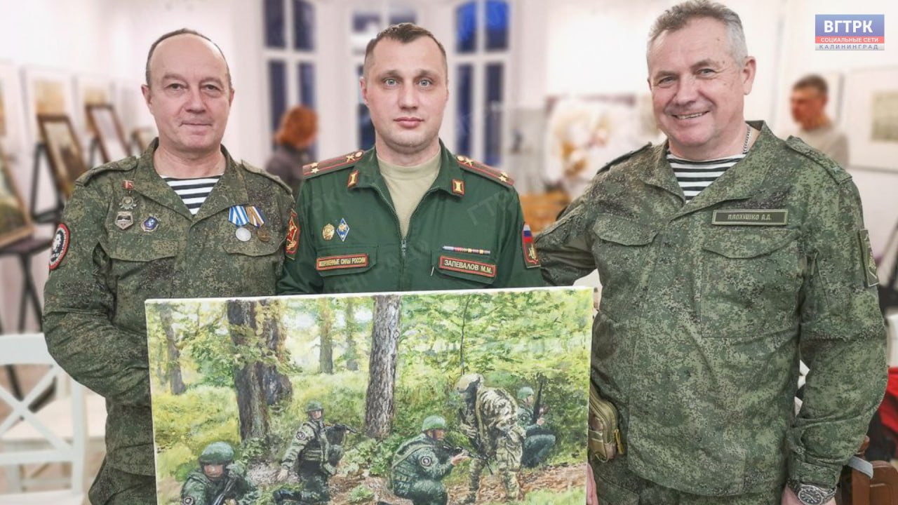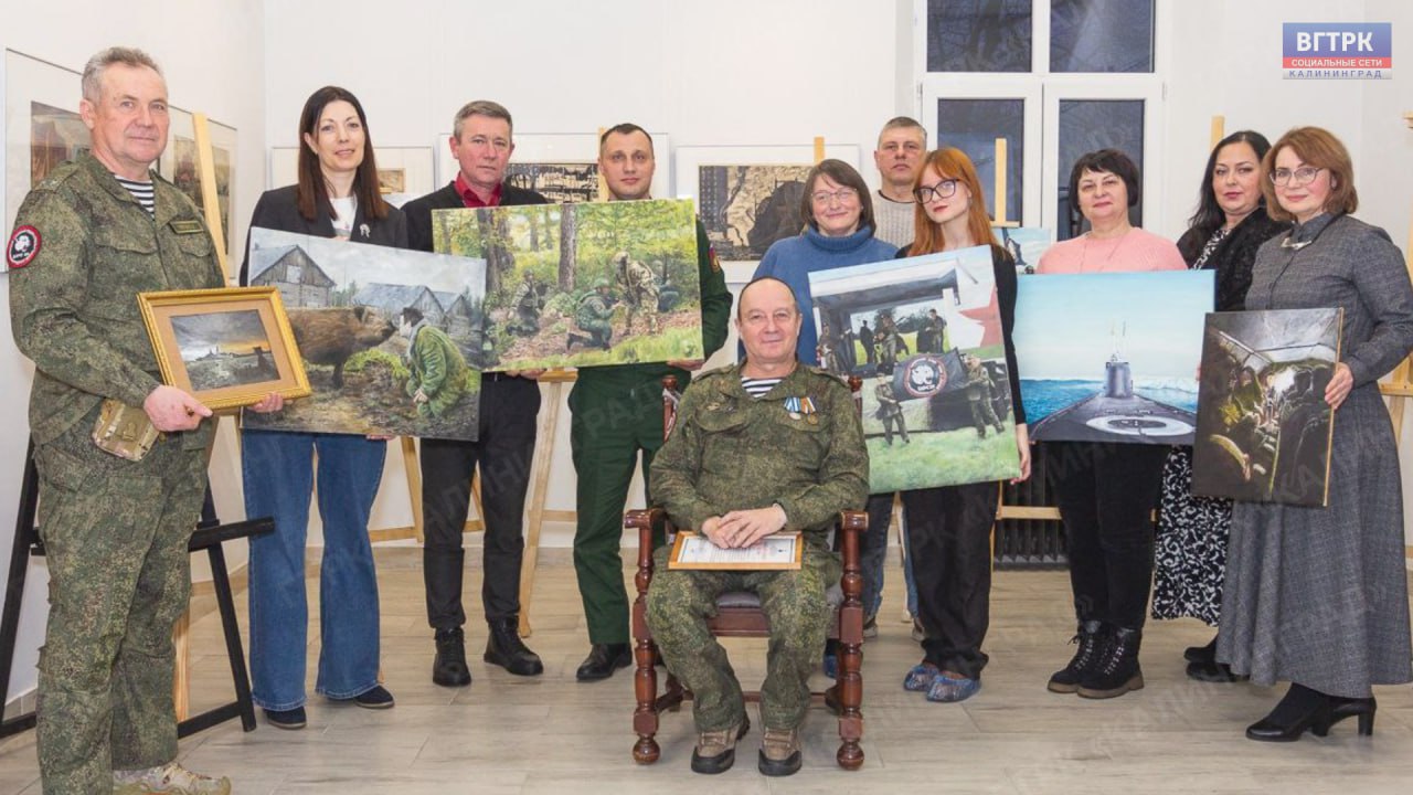 Художник и офицер.В Черняховске состоялась творческая встреча с Владимиром Кошкиным.В картинах мастера военные будни, портреты бойцов СВО и пейзажи Янтарного края.Выставка проходит в художественной школе Черняховска.