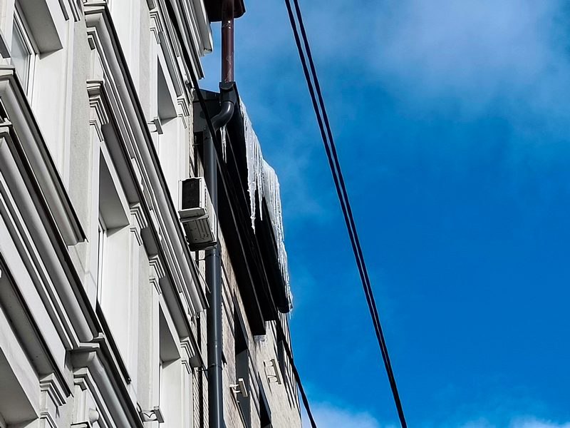 Одна из таких серьёзных угроз возникла прямо в центре Калининграда, недалеко от входа в филиал «Энерготрансбанка» на улице Черняховского, 3. Массивный лёд весом около 15 килограммов грозит свалиться с высоты порядка 12 метров на тротуар.