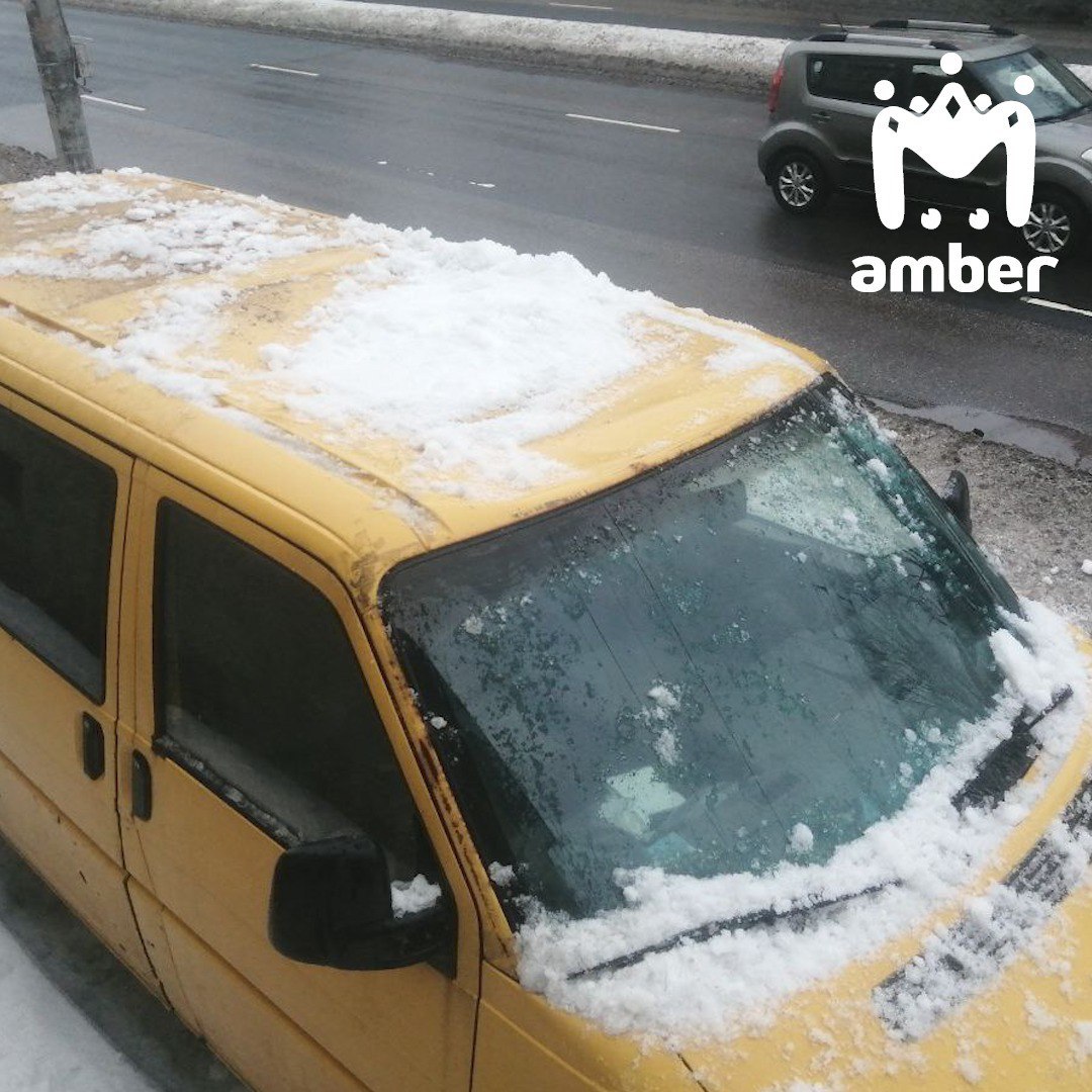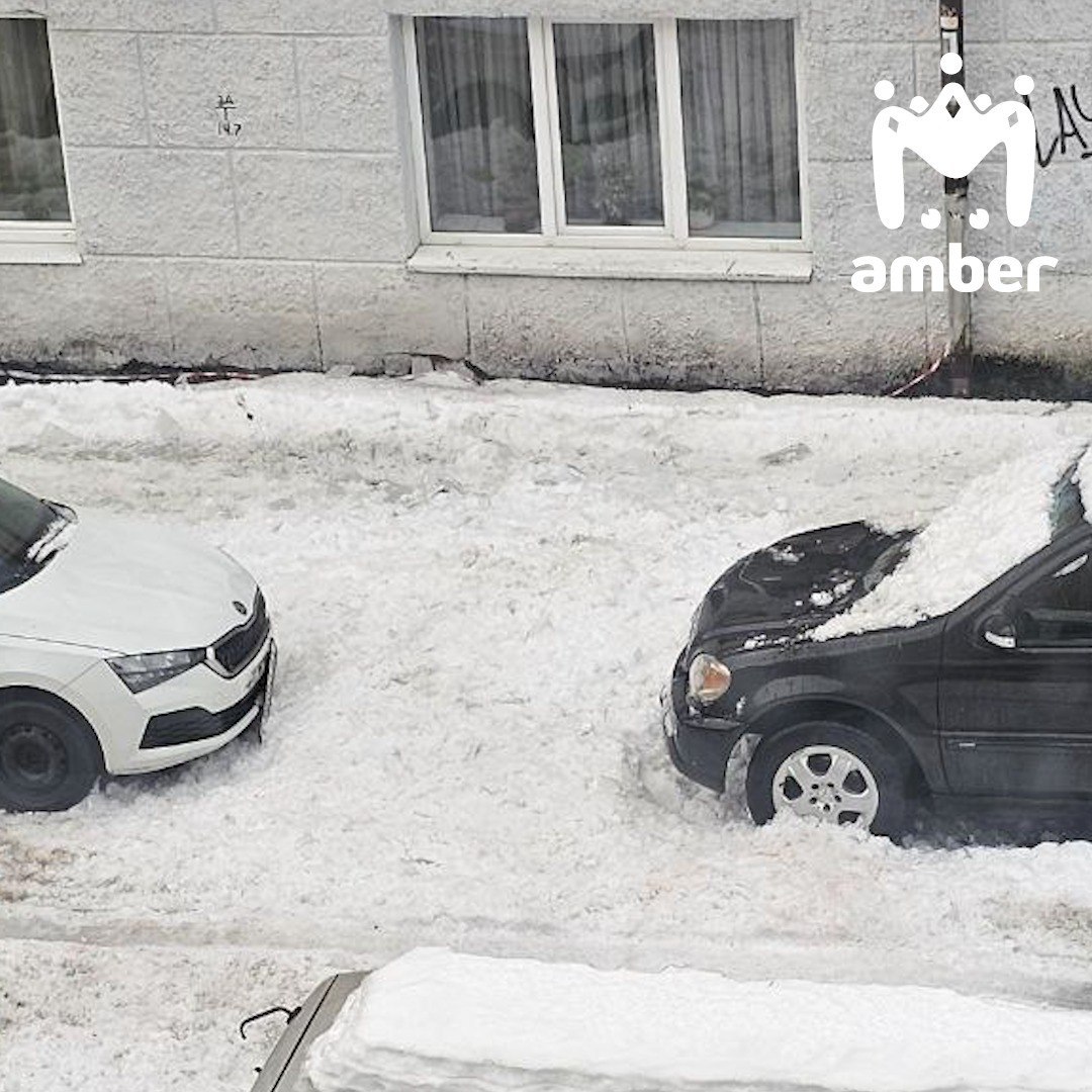 Глыбы льда падают с крыш и бьют машины в Калининграде.