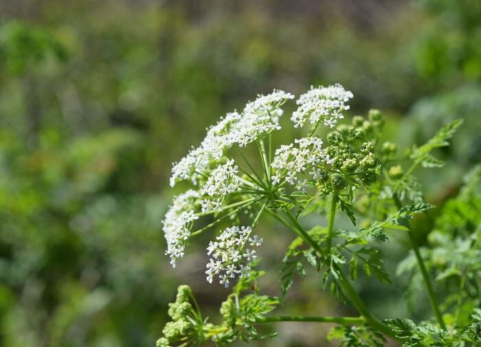 Основные токсины болиголова включают конин и его производные, такие как N-метилкониин и псевдоконгидрин, что делает его крайне опасным для здоровья.