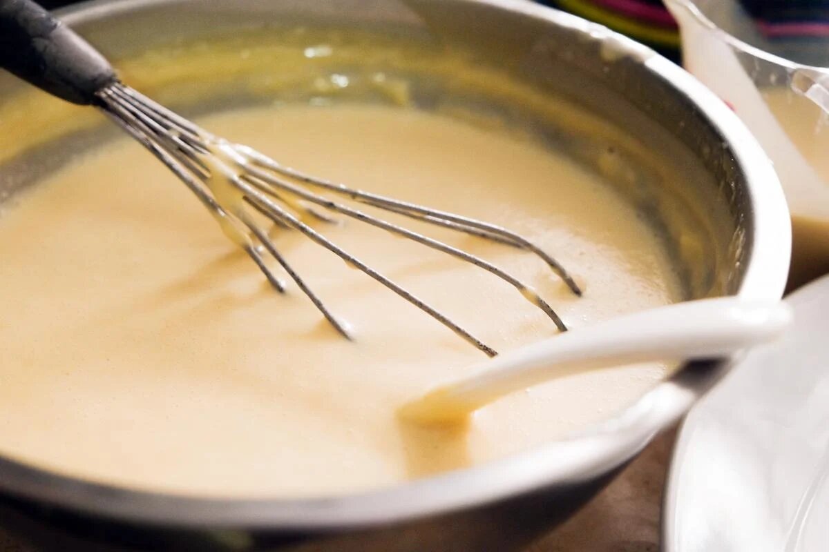 Кроме того, такой подход позволяет избежать головной боли при чистке губки от теста. Освободить посуду от оставшихся кусочков лучше всего с помощью венчика. В конце процесса можно воспользоваться губкой, и тем самым избежать её загрязнения.