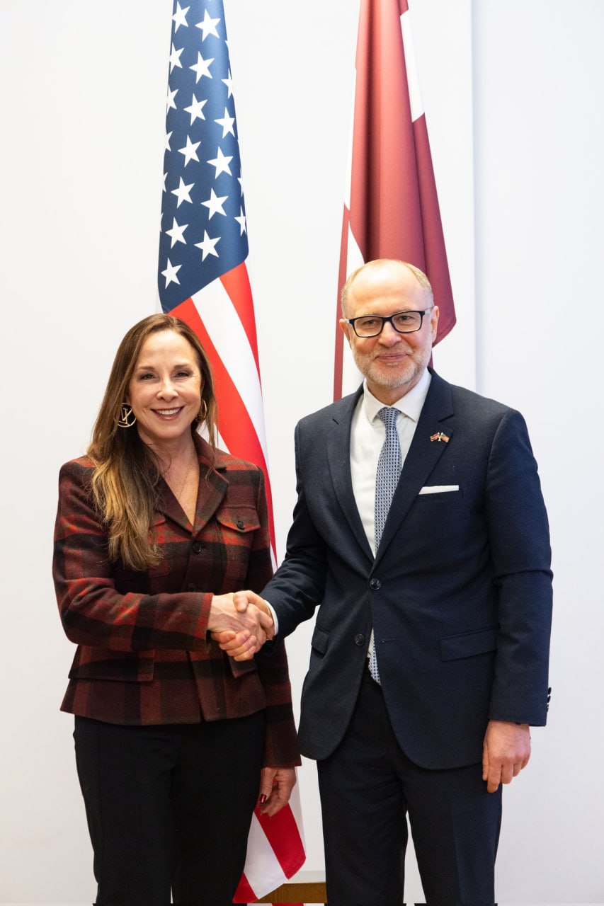 Андрис Спрудс встретился с американским послом Мелиссой Аргирос для обсуждения "латвийско-американского сотрудничества в области обороны и инициатив по укреплению региональной безопасности".