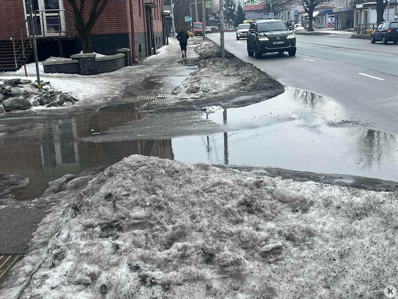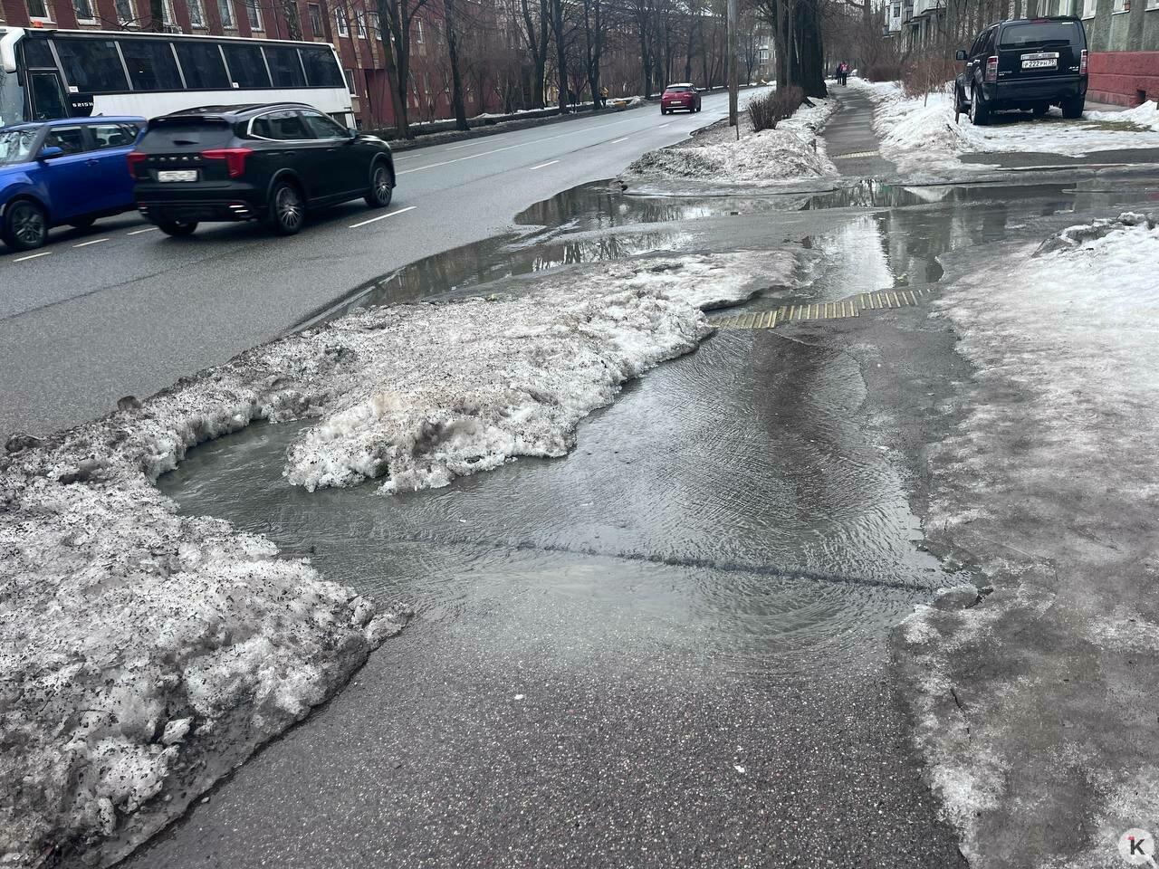 В центре Калининграда из-под асфальта бьёт фонтан, обходившая потоп женщина разбила лицо на гололёде