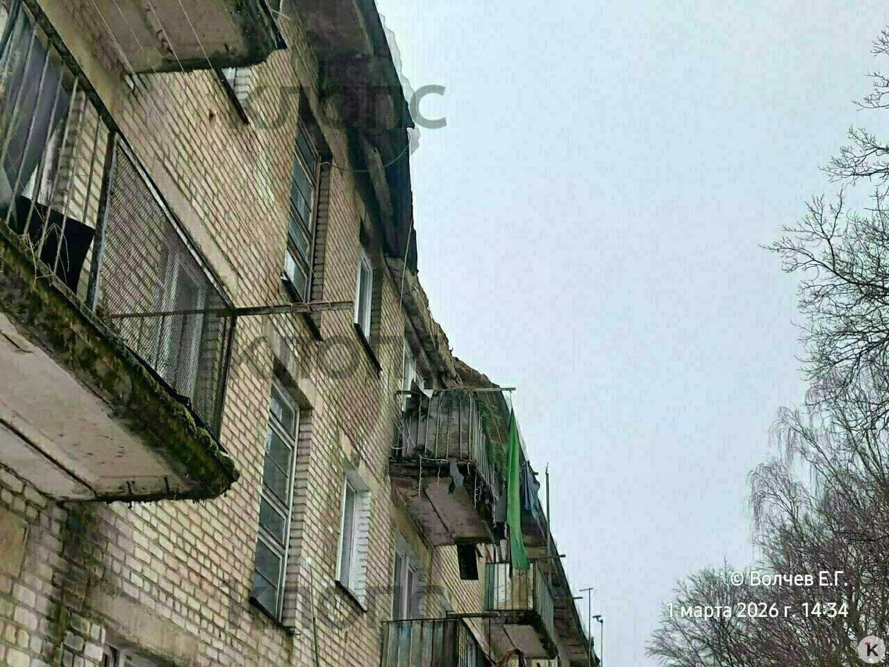 «Я услышал громкий шум со стороны трёхэтажки. Когда обернулся, увидел, как от крыши отделился фрагмент перекрытия размером в несколько метров. Он полетел вниз, а следом за этим куском бетона — большие глыбы льда. Вся эта масса обрушилась на балкон квартиры на третьем этаже, а часть бетонных конструкций грохнулась прямо у входа в подъезд», — рассказывает мужчина.