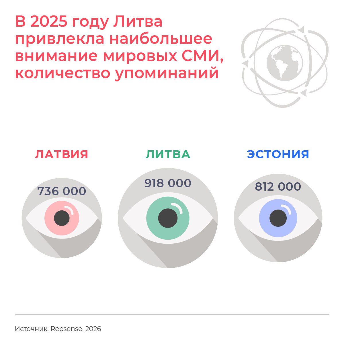 В прошлом году Литва привлекала наибольшее внимание мировых СМИ среди трех балтийских стран, свидетельствует исследование, проведенное Repsense.