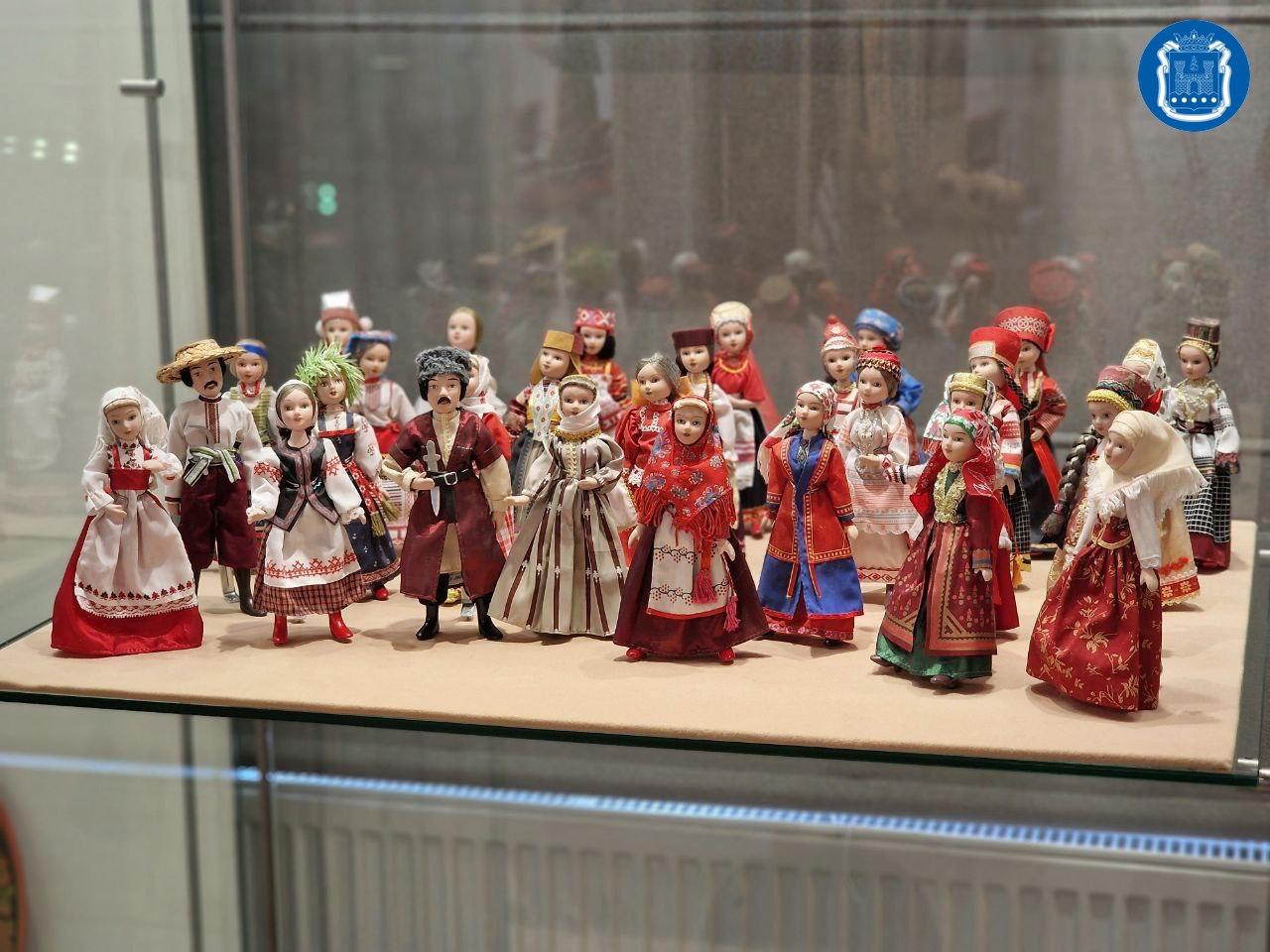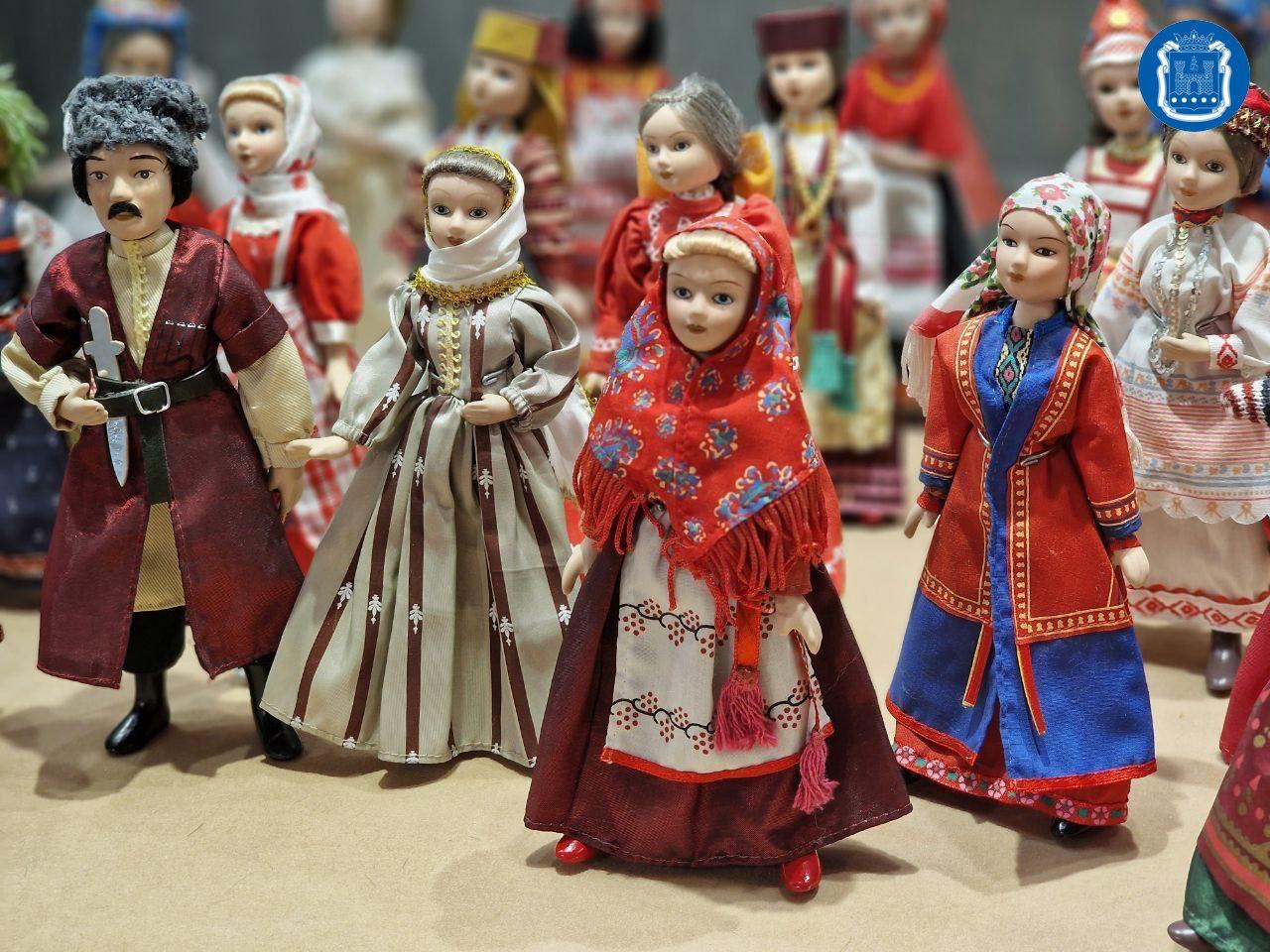 Представили около 30 кукол в русских сарафанах и кокошниках, белорусских вышитых рубахах, восточных меховых шапках и других атрибутах народов многонациональной России.