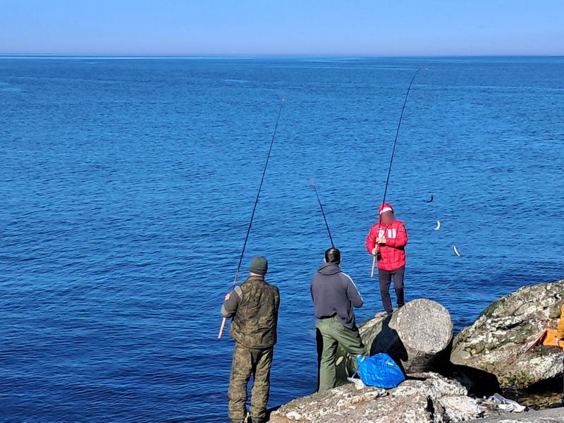 «Салаку вытаскивают гроздьями», — рассказали очевидцы. То и дело на одну снасть попадалось по 4–5 рыбин. Салака шла так густо, что даже на обычно малолюдной оконечности мола рыбаки стояли в одну шеренгу. Результативность впечатлила: полдня с удочкой — половина шестилитрового ведра.