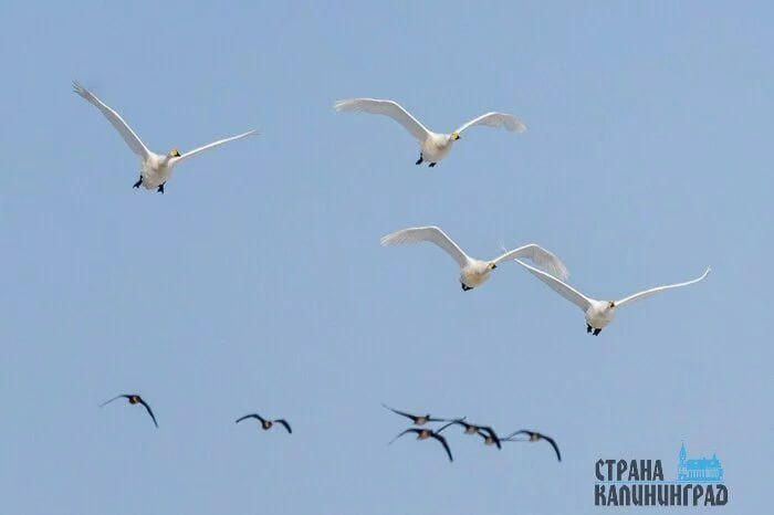 Грация журавлей и полёт лебедей: в небе над Калининградской областью появились первые стаи