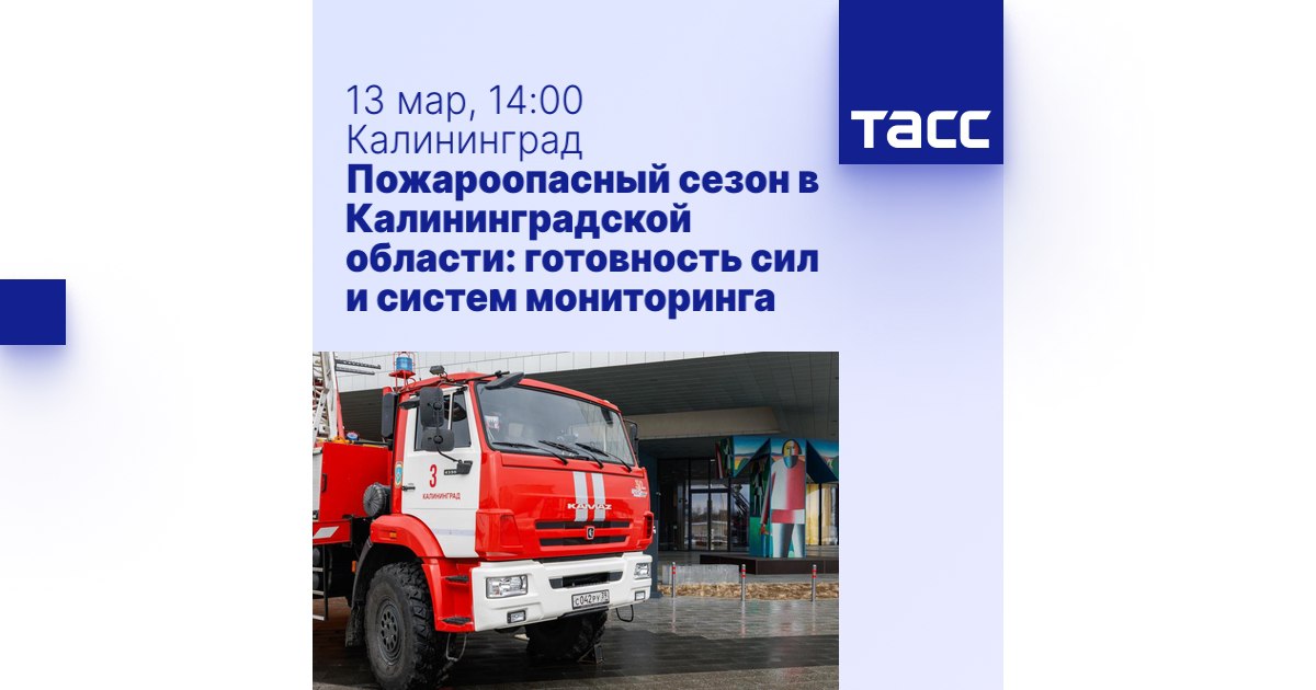 Прямо сейчас в региональном информационном центре "ТАСС Калининград" проходит пресс-конференция, посвященная подготовке Калининградской области к пожароопасному сезону 2026 года и мерам по обеспечению пожарной безопасности.