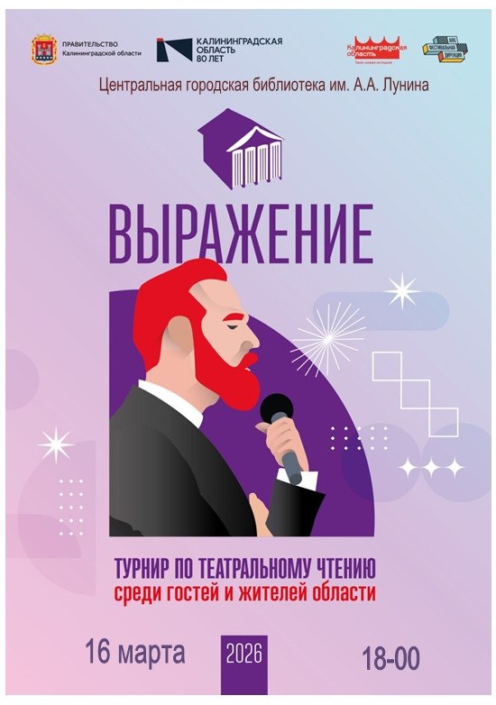 В Центральной городской библиотеке им. А. Лунина пройдет этап Международного турнира по театральному чтению «Выражение 2026» в Черняховске.