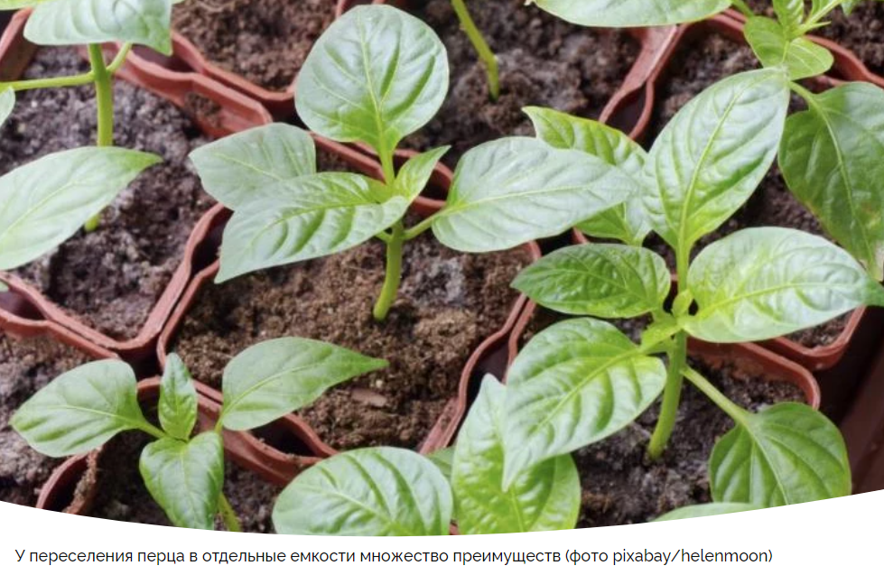Перцы можно выращивать с пикировкой или без нее. Во втором случае семена сажаются непосредственно в отдельные контейнеры, где остаются два семечка, из которых выбирается наиболее сильное. Когда растению становится тесно, его просто пересаживают в горшок большего объема.