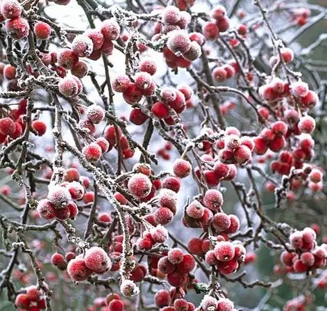 На днях многие садоводы вспоминали о декоративных яблонях, способных придавать зимнему саду особую привлекательность. Однако следует отметить, что их стойкость к зимним холодам зависит от погоды. Например, поздние заморозки или обильные осадки могут как украсить яблони, так и существенно снизить их декоративное качество. Яблони сорта Professor Sprenger иногда радуют яркими плодами до самой зимы, но в этом году, увы, они скрылись под снегом.