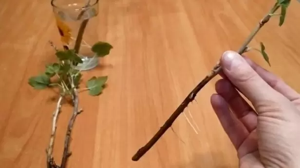 - Вода: черенки помещают в стакан с небольшим количеством воды. Свежую воду рекомендуется менять регулярно, но оптимальная длина корней для пересадки — 2–3 см.