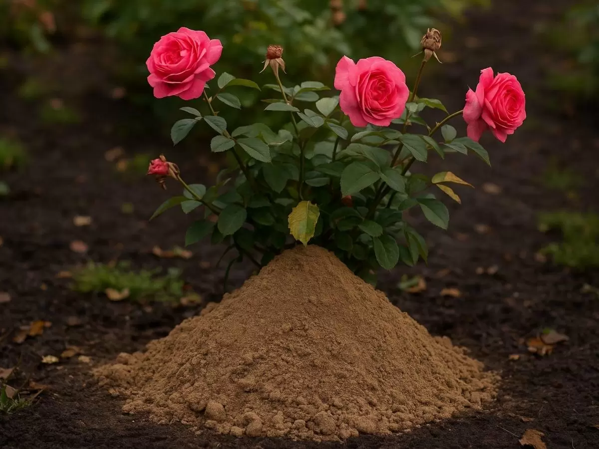 Убедитесь, что под кустом нет остатков листьев и срезов, так как они могут стать источником заболеваний. И в конце, для защиты на зимние месяцы, в холодных регионах подокучьте основание куста землёй или сухими листьями, а контейнерные розы переместите в более защищенные места.