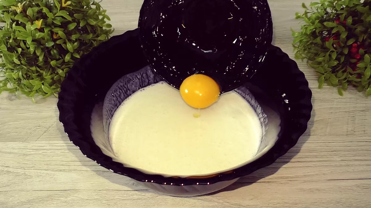 1. В глубокой миске соединить кефир, желток, соль, сахар и растительное масло. Хорошо перемешать.