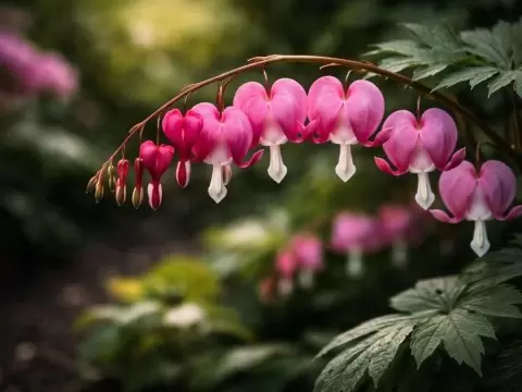 Цветение дицентры начинается в конце весны — начале лета, когда на изогнутых цветоносах появляются цветы, напоминающие сердечки. Эти уникальные цветы могут быть розовыми, белыми или с легким красноватым оттенком, в зависимости от сорта. Несмотря на то, что цветы держатся всего несколько недель, они создают легкость и воздушность в саду. А после цветения дицентра не теряет своей привлекательности, оставаясь аккуратным и зеленым акцентом на участке.