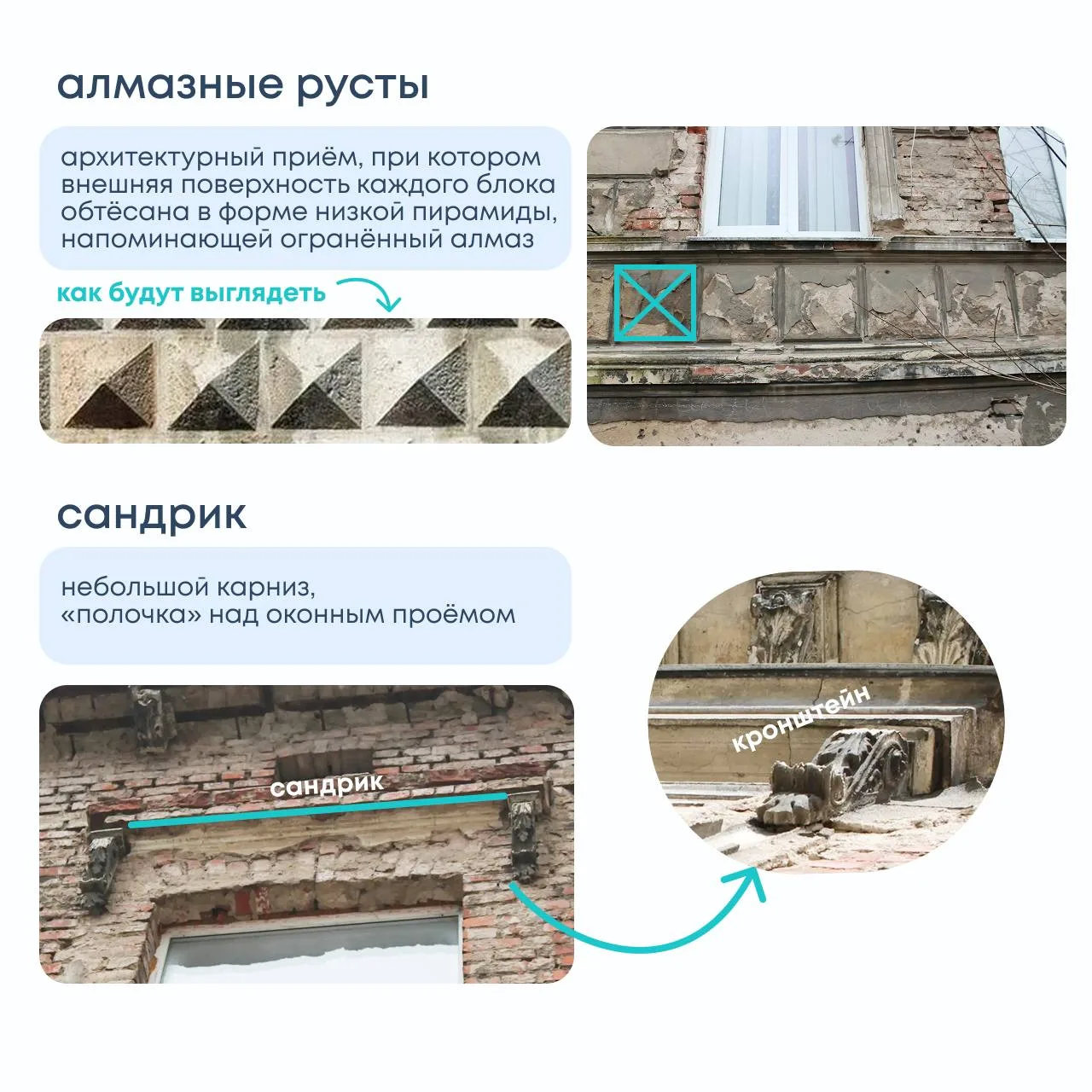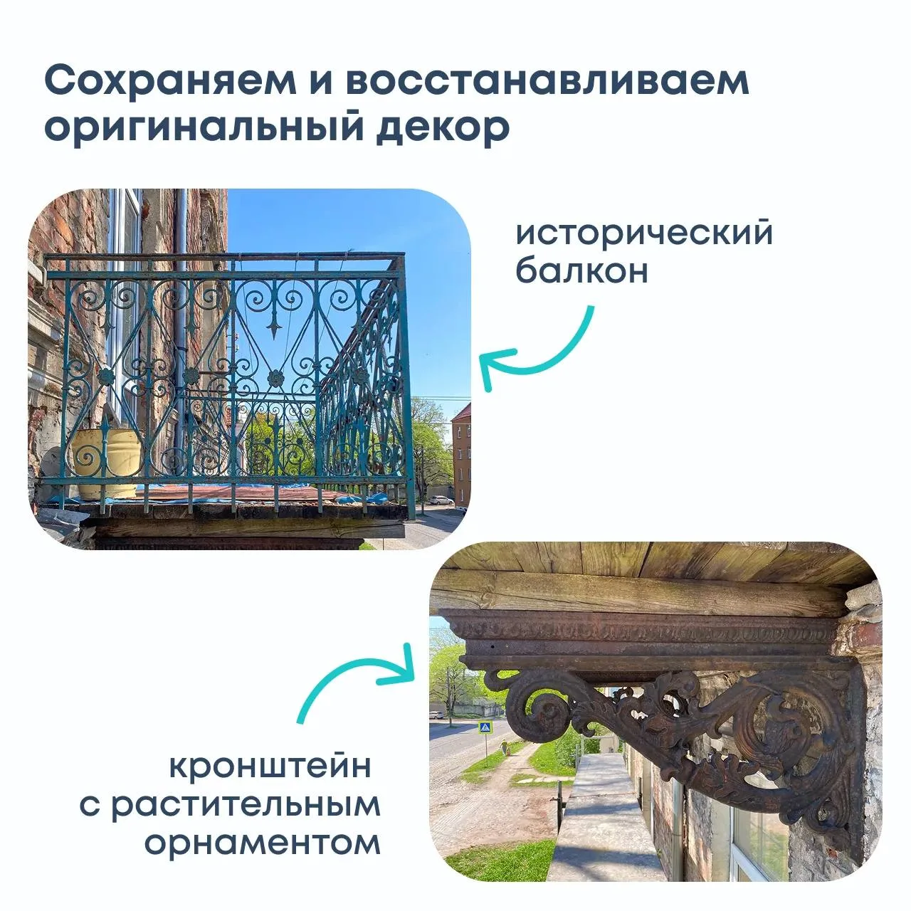 В частности, специалисты вернут по историческим фотографиям утраченные элементы фасада, сандрики над окнами и кронштейны . По цоколю пойдут алмазные русты. Один из балконов потерялся (упал) во времени, оставив после себя чугунные кронштейны. Его кованое ограждение восстановят – как было .