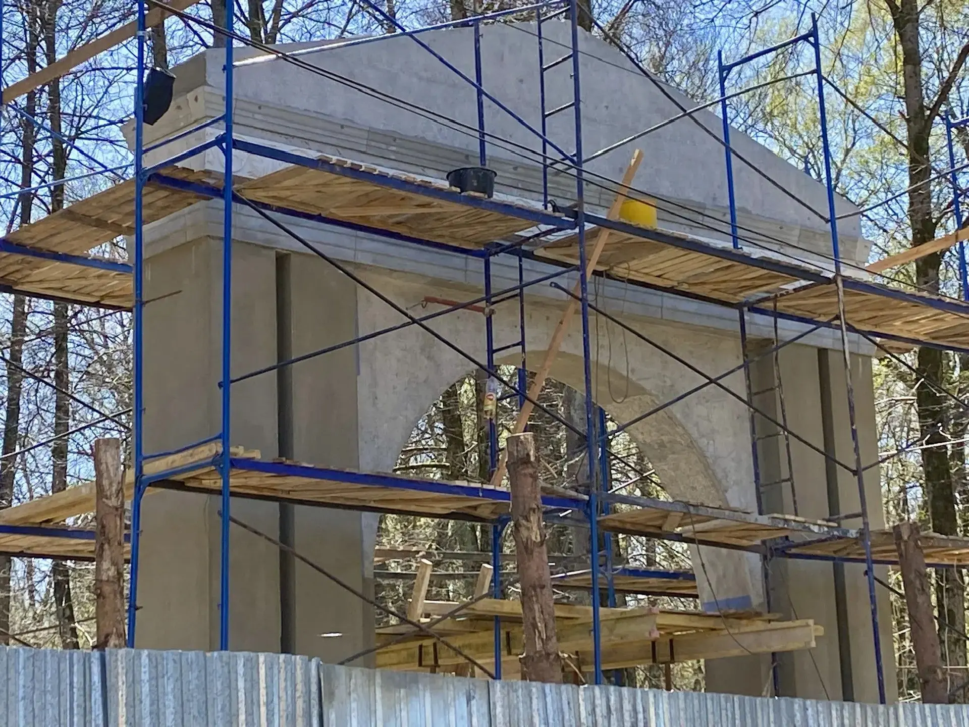 Речь о местной достопримечательности на входе в городской парк со стороны улицы Матросова. С наступлением тёплых дней подрядчик вернулся на объект.