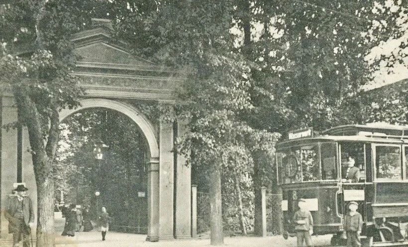 Именно на этом месте стояла арка, служившая центральным входом в парк Якобсруэ во времена Тильзита. Она была разрушена в ходе сражений Второй Мировой войны. Рядом находилась трамвайная остановка.