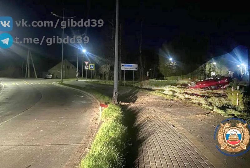 В Заостровье Зеленоградского района в четверг, 23 апреля 2026 года, в 22:40, пьяный 29-летний водитель завёз троих человек в световую опору.