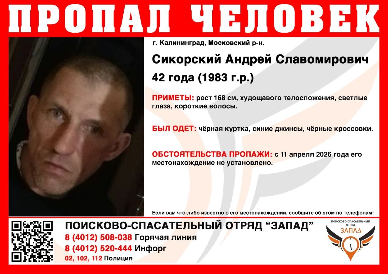 В Калининграде ищут 42-летнего Андрея Сикорского, который пропал 2 недели назад