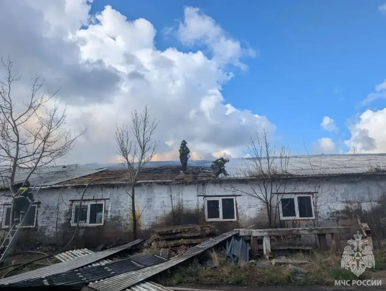 ЧП произошло утром в воскресенье, 26 апреля, на Железнодорожной улице. Пламя распространилось на 600 кв. м. К 8:25 на место происшествия прибыли 18 сотрудников МЧС и четыре единицы спецтехники. Погибших и пострадавших нет.