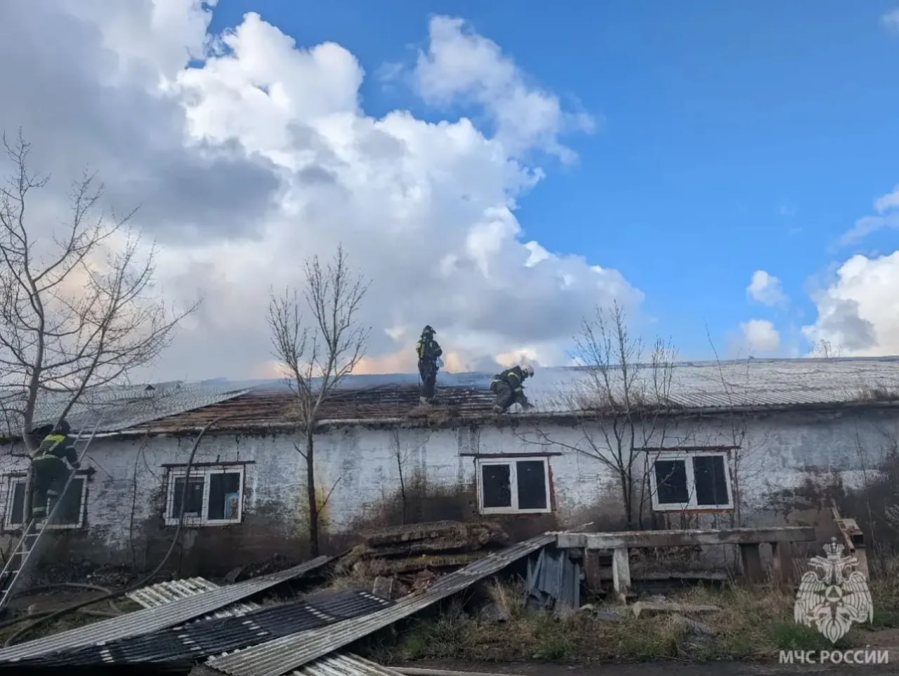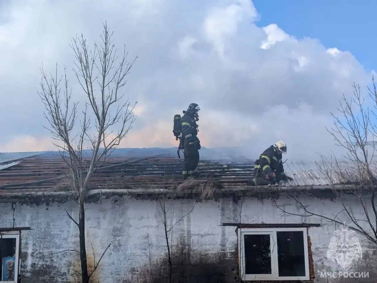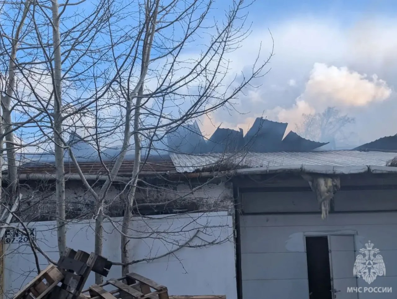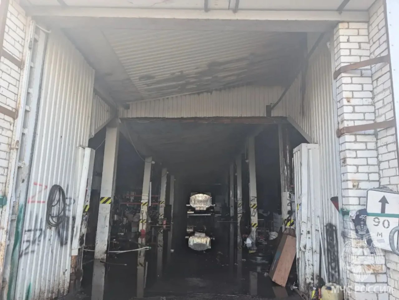 В Полесске на улице Железнодорожной ночью в воскресенье, 26 апреля 2026 года, возник крупный пожар в крупном гараже, принадлежащем организации.
