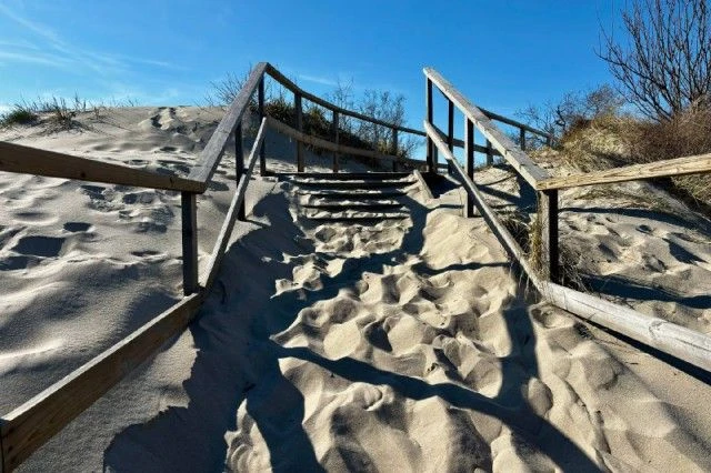 «Засыпает всё на своём пути»: учёный объяснил, почему лестницы через авандюну в Зеленоградске занесло песком