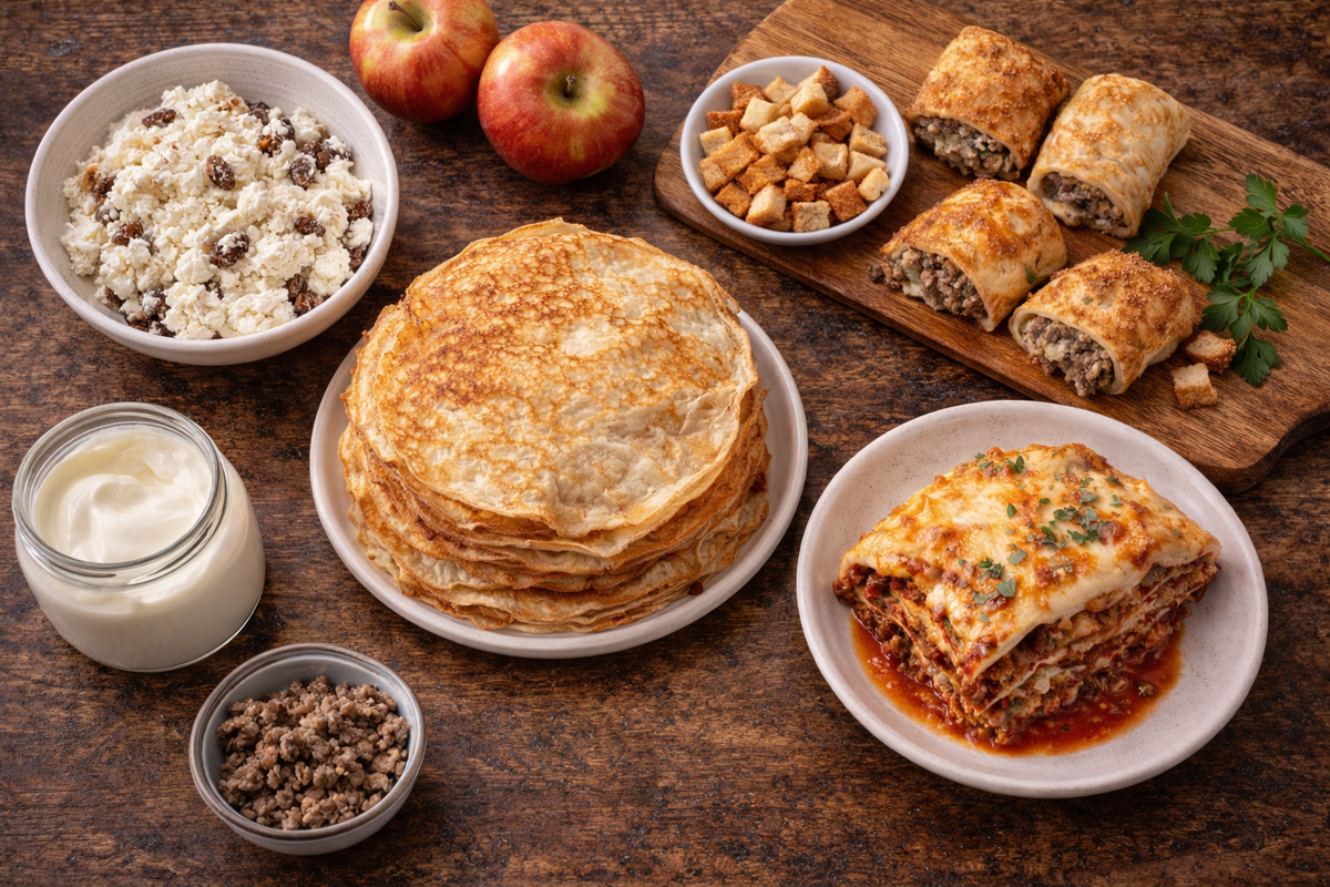 Остались блины, начинка и немного сметаны? Не спешите выбрасывать! Вместо этого можно превратить масленичные «остатки» в совершенно новые блюда за считанные минуты.