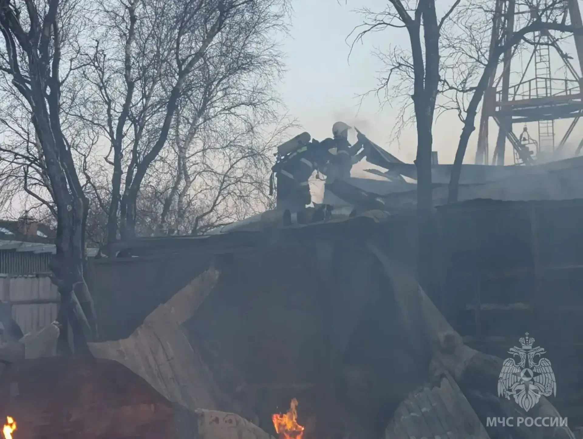 Открытое горение удалось к утру локализовать на площади 500 квадратных метров! Пожарные вытащили 8 пропановых баллонов и не дали огню перейти на газовую котельную и жилой дом .